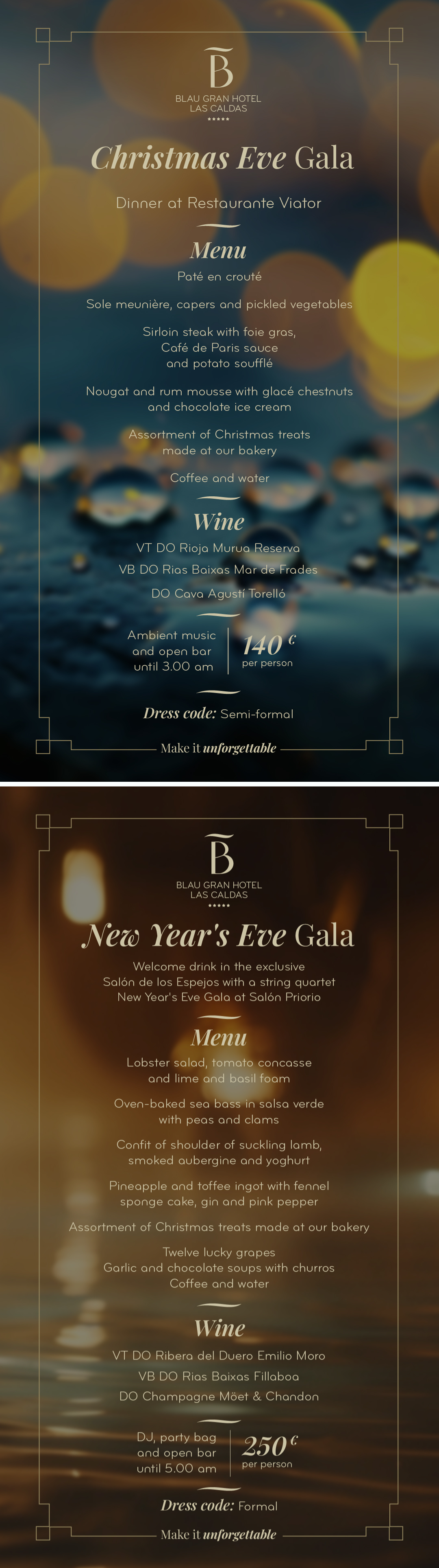 Genießen Sie ein Weihnachts- und Silvesterfest voller Magie und Tradition und schaffen Sie unvergessliche Erinnerungen mit Ihren Liebsten, während Sie ein exklusives Menü genießen.